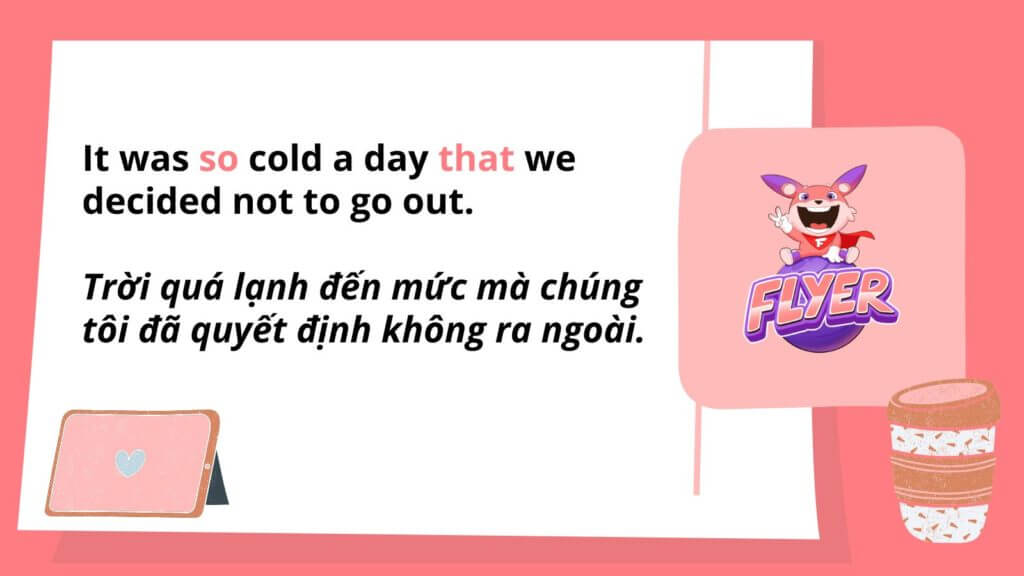 Nghĩa của “so … that…” là “quá … đến nỗi mà …” hoặc “quá … nên …”