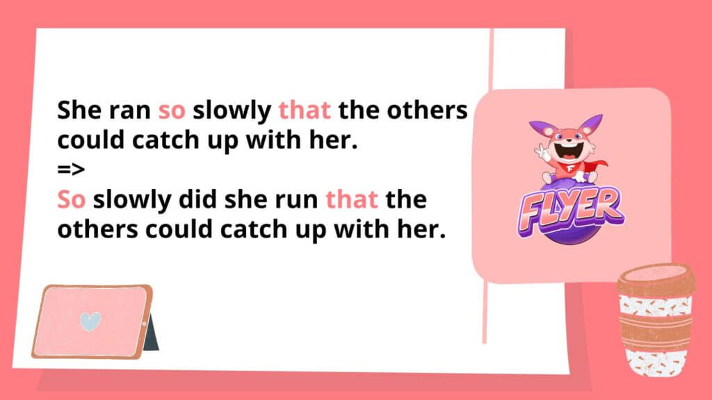 Khi đặt mệnh đề có chứa trạng từ hoặc tính từ được bắt đầu bằng “so” đầu câu sẽ có tác dụng nhấn mạnh. Khi đó, ta có cấu trúc đảo ngữ:
