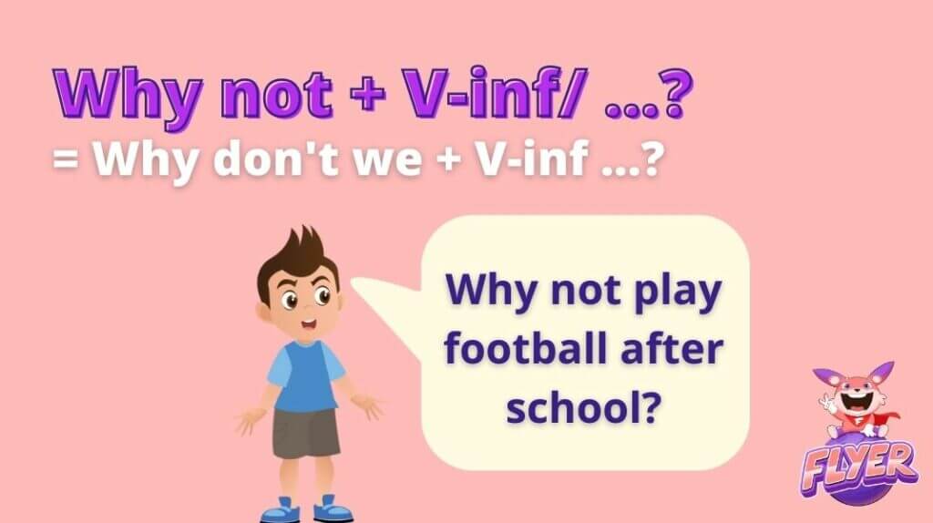 Bạn có thể dùng “Why don’t we” để gợi ý ở ngôi thứ nhất, hoặc “Why don’t you” – “Tại sao bạn không …?” khi muốn đưa ra lời đề xuất ở ngôi thứ hai.