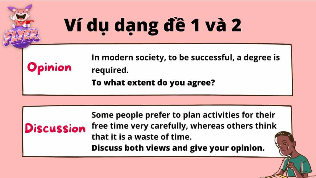 - Tránh nhầm lẫn với dạng đề Opinion essay hoặc Discussion essay