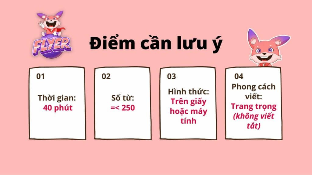 | Số từ | Tối thiểu 250 từ (không nên viết quá dài) |