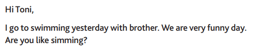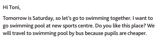 Ngoài ra, thí sinh cũng nên tránh mắc lỗi của bài viết đạt band điểm thấp hơn trong bài thi Writing KET Cambridge dưới đây: