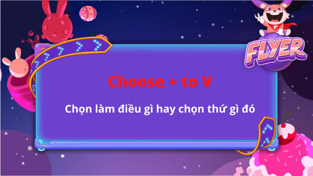 Cấu trúc “choose” đi kèm với “to V” có nghĩa là chọn làm điều gì hay chọn thứ gì đó.