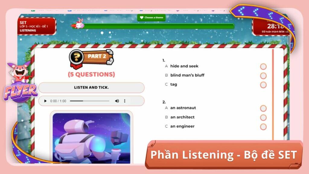 Tổng quan bộ đề luyện thi học kỳ tiếng Anh lớp 5 trên phòng luyện thi ảo FLYER