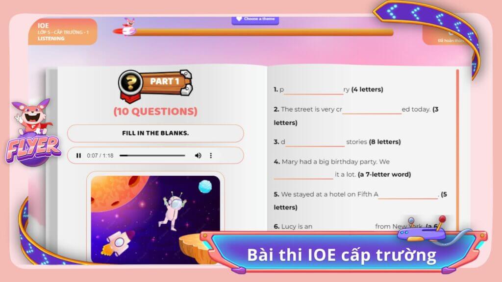 Phần thi Listening IOE lớp 5 mô phỏng cấp trường