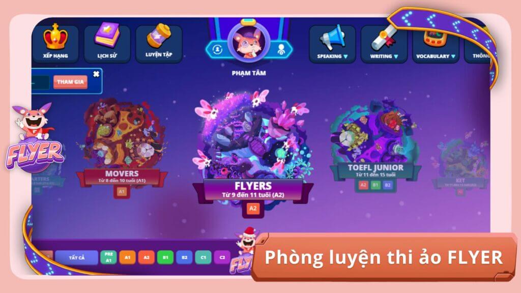 Nếu đã thực hiện đủ các bước trên và đang trong giai đoạn cho con luyện thi, ba mẹ có thể tham khảo hơn 200 đề thi trên FLYER với độ mô phỏng sát với đề thi thực tế của Cambridge ở trình độ A2 Flyers. Trong đó, đề đầu tiên sẽ được cung cấp hoàn toàn miễn phí để con có thể tha hồ trải nghiệm và thử sức.