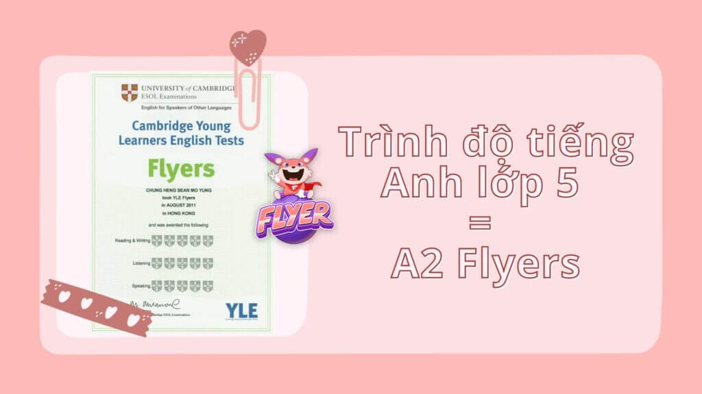 Theo đó, trình độ tiếng Anh của học sinh lớp 5 tại Việt Nam tương đương với cấp độ A2 Flyers trong chương trình tiếng Anh Cambridge English: Young Learners (YLE) dành cho thiếu nhi từ 7-12 tuổi.
