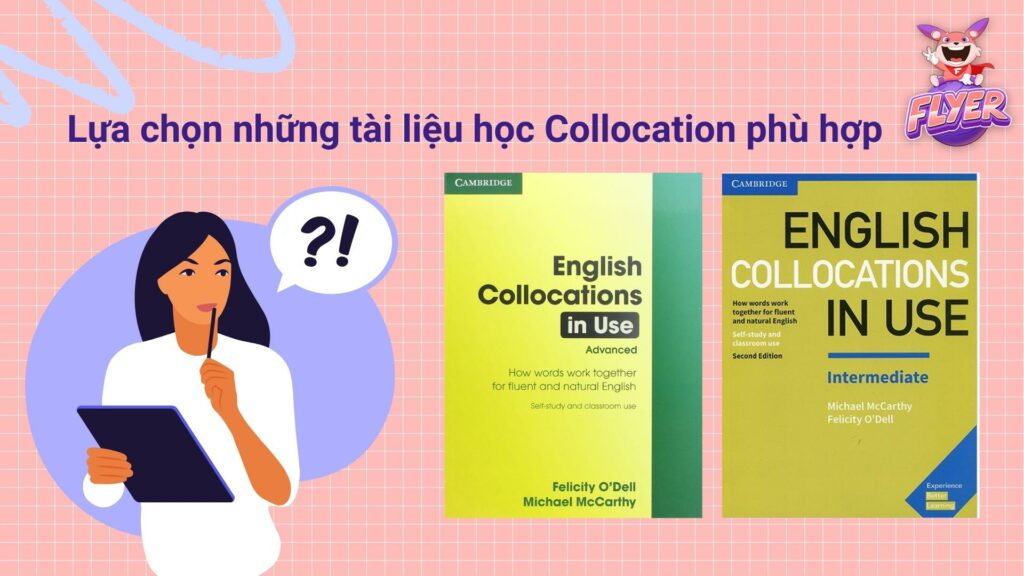 Hiện nay, trên thị trường có rất nhiều tài liệu tổng hợp collocation với đa dạng nội dung và hình thức. Bạn có thể dễ dàng tìm mua những tài liệu này online hoặc tại các nhà sách. Tuy nhiên, trước khi mua bất kỳ tài liệu nào, bạn cũng cần hiểu rõ trình độ hiện tại của mình là beginner (mới bắt đầu), intermediate (trung cấp) hay advanced (nâng cao) để lựa chọn tài liệu cho phù hợp nhất. Nếu lựa chọn tài liệu không phù hợp với trình độ bản thân, bạn sẽ dễ cảm thấy chán nản và muốn bỏ cuộc.