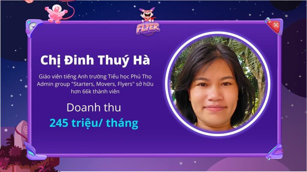 Là một giáo viên tiếng Anh tại Trường tiểu học Chu Hoá – tỉnh Phú Thọ và là admin của group “Starters, Movers, Flyers” sở hữu hơn 66k thành viên, chị Thuý Hà luôn truyền cảm hứng yêu thích học tiếng Anh cho học sinh của mình, cũng như kinh nghiệm luyện thi tiếng Anh bổ ích và hiệu quả cho phụ huynh.