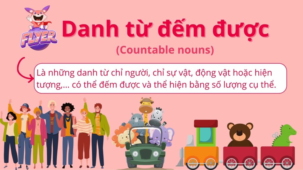 Danh từ đếm được là những danh từ chỉ người, chỉ sự vật, động vật hoặc hiện tượng,… mà bạn có thể đếm được, và có thể thể hiện bằng số lượng cụ thể.