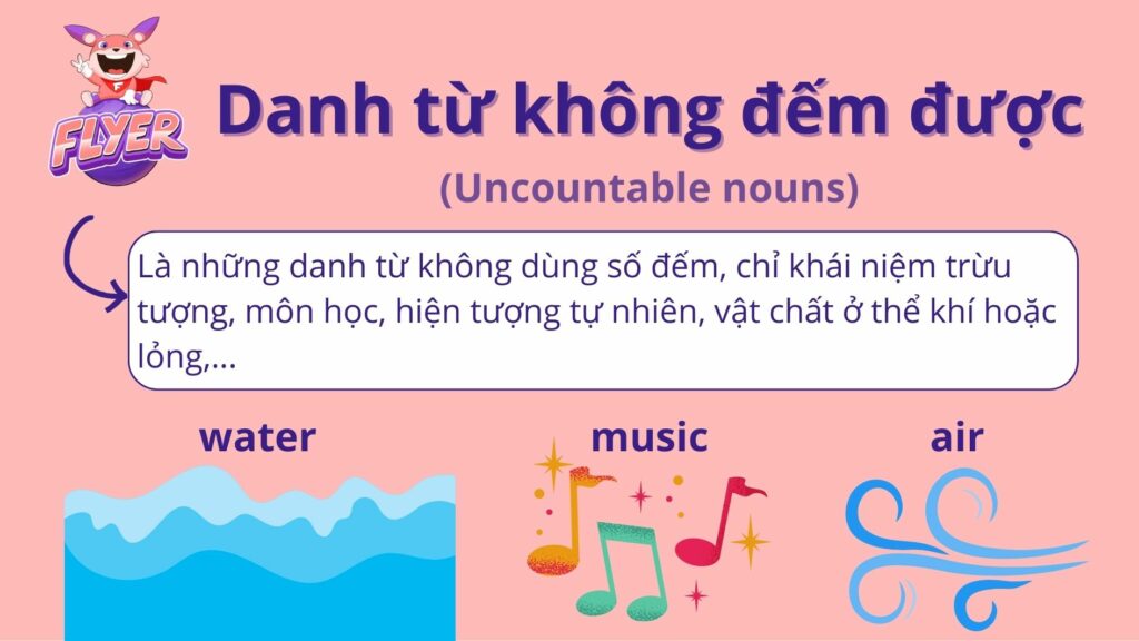 Danh từ đếm được và không đếm được tưởng chừng là một phần ngữ pháp đơn giản nhưng lại gây ít nhiều khó khăn cho các bạn mới bắt đầu học Tiếng Anh. Vậy làm thế nào để phân biệt hai loại danh từ này? Cách sử dụng danh từ đếm được và danh từ không đếm được có gì khác nhau? Có những trường hợp nào cần lưu ý? Hãy cùng FLYER giải đáp toàn bộ thắc mắc về 2 loại danh từ này ngay trong bài viết sau đây nhé.