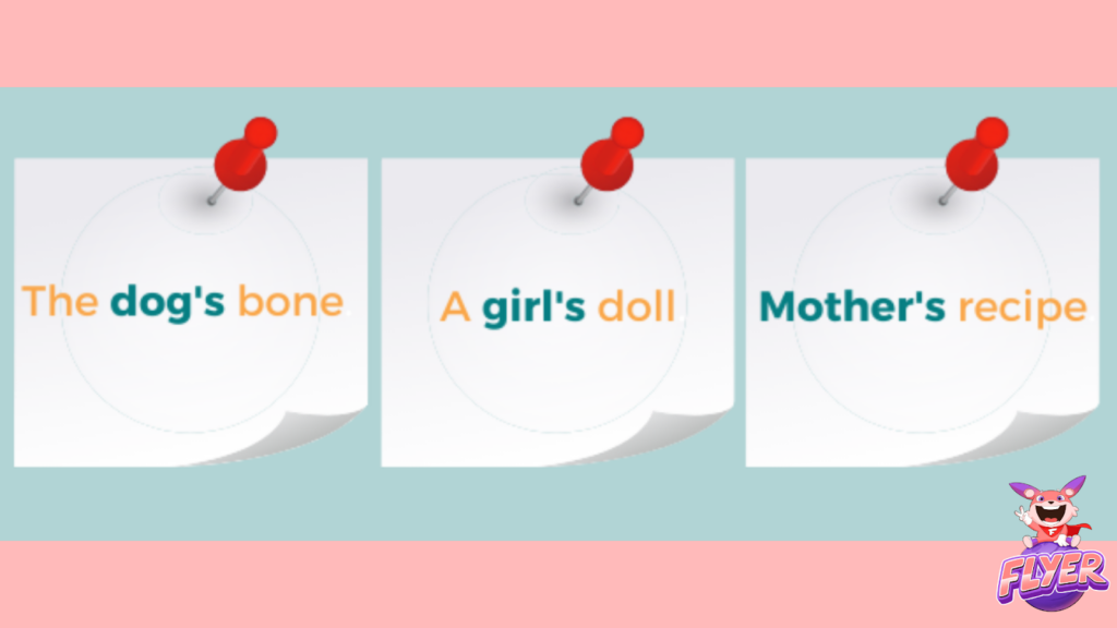 ‘s được thêm vào sau danh từ chỉ người/vật sở hữu để biến danh từ phía sau nó thuộc quyền sở hữu hoặc đánh dấu mối quan hệ với người/vật đứng trước. Để để hình dung hơn, FLYER minh họa dưới công thức sau: