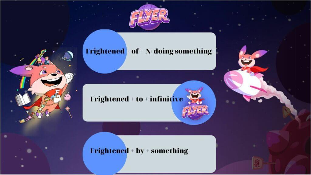 “Frightened” đi với giới từ gì là câu hỏi thắc mắc của rất nhiều bạn. Thông thường, “frightened” sẽ đi với giới từ “of” để diễn tả trạng thái “sợ gì đó hoặc sợ làm gì đó”. Bên cạnh đó, nó cũng đi kèm với một số giới từ khác. Sau đây, FLYER sẽ bật mí cho bạn cấu trúc, ý nghĩa và ví dụ của từng cấu trúc giới từ đi với “frightened”.
