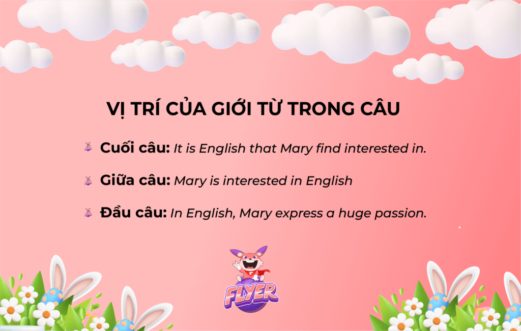Chuyển “in” từ vị trí cuối vào giữa câu: Mary is interested in English