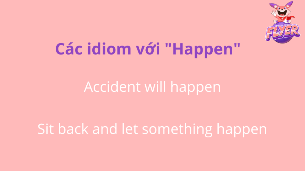 Không ít lần bạn bắt gặp từ “Happen” trong một bài báo hay trong bộ phim yêu thích đúng không nào? “Happen” có nghĩa là gì? “Happen” đi với giới từ gì? Vì sao cùng diễn tả một sự kiện thế nhưng có lúc người ta dùng “Happen”, có lúc lại dùng “Occur” và “Take place”. Đó chắc hẳn là câu hỏi của không ít bạn. Trong bài viết này, FLYER sẽ mách nhỏ bạn đáp án cho những câu hỏi trên. Còn chần chờ gì mà không khám phá câu trả lời ngay thôi nào!