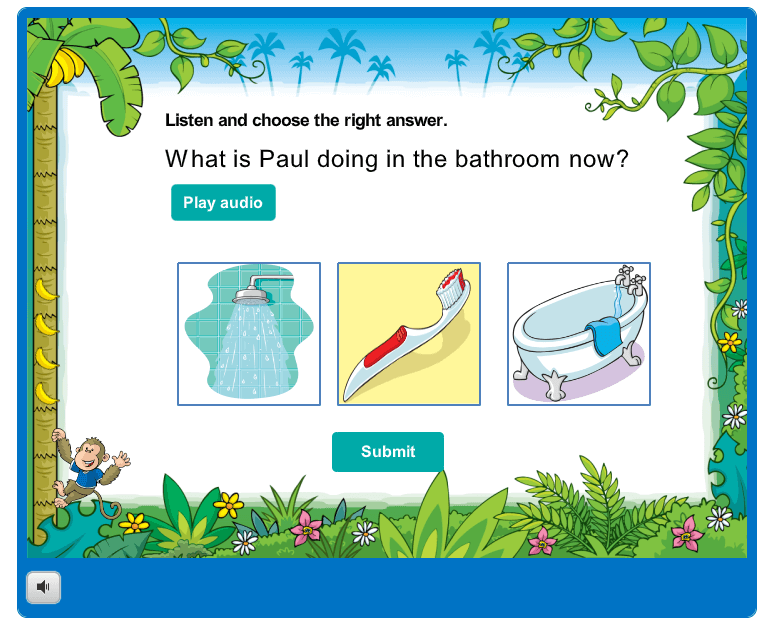 • Yêu cầu: nghe và trả lời câu hỏi bằng cách click vào bức tranh có nội dung phù hợp