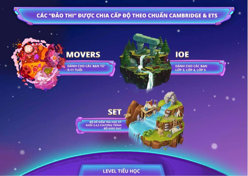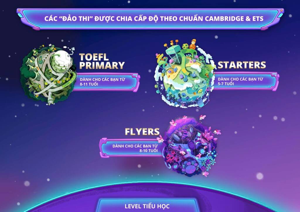 - Bước 3: Lựa chọn đảo thi với cấp độ mà con đang ôn luyện hoặc cấp độ phù hợp với độ tuổi của con,