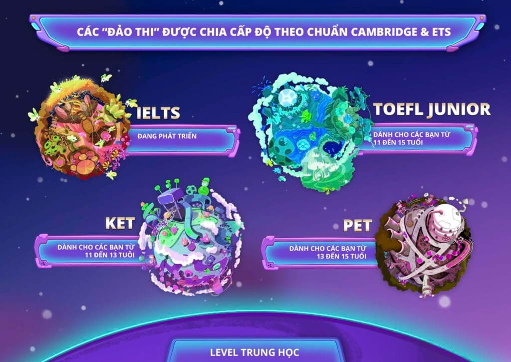 (2) Chỉ với 1 tài khoản từ 490.000, học sinh có thể luyện tập với kho đề thi đa dạng gồm 350 đề, trải mọi cấp độ bao gồm: Starters, Movers, Flyers, TOEFL Primary, TOEFL Junior, KET, PET, IOE, SET (đề ôn thi học kỳ tiếng Anh dành cho lớp 3, 4, 5).