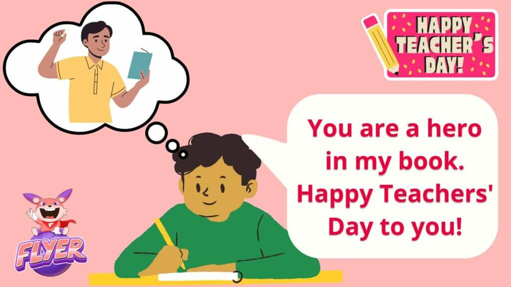 | You are a hero in my book. Happy Teachers’ Day to you! | Thầy là người hùng trong quyển sách của em. Em chúc thầy có một ngày Nhà giáo vui vẻ! |