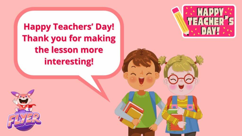| Happy Teachers’ Day! Thank you for making the lesson more interesting! | Chúc mừng ngày Nhà giáo! Em cảm ơn thầy/ cô vì đã khiến cho những bài học thêm thú vị hơn! |