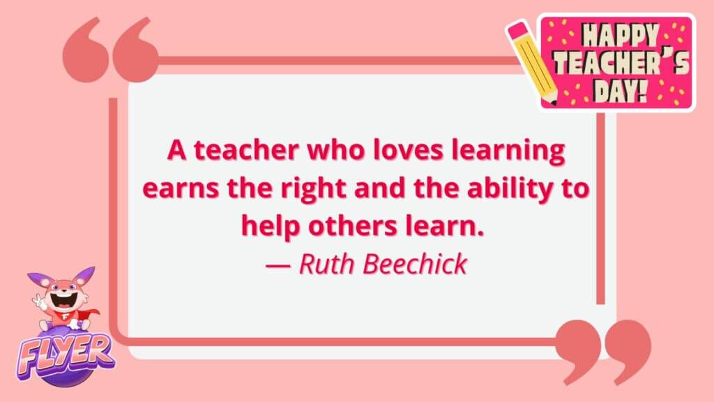 | A teacher who loves learning earns the right and the ability to help others learn. ― Ruth Beechick | Một người giáo viên yêu thích việc dạy học sở hữu quyền và năng lực giúp đỡ những người khác trong học tập.― Ruth Beechick |