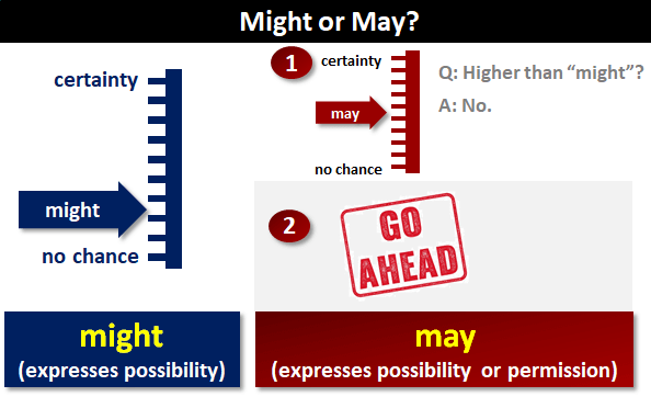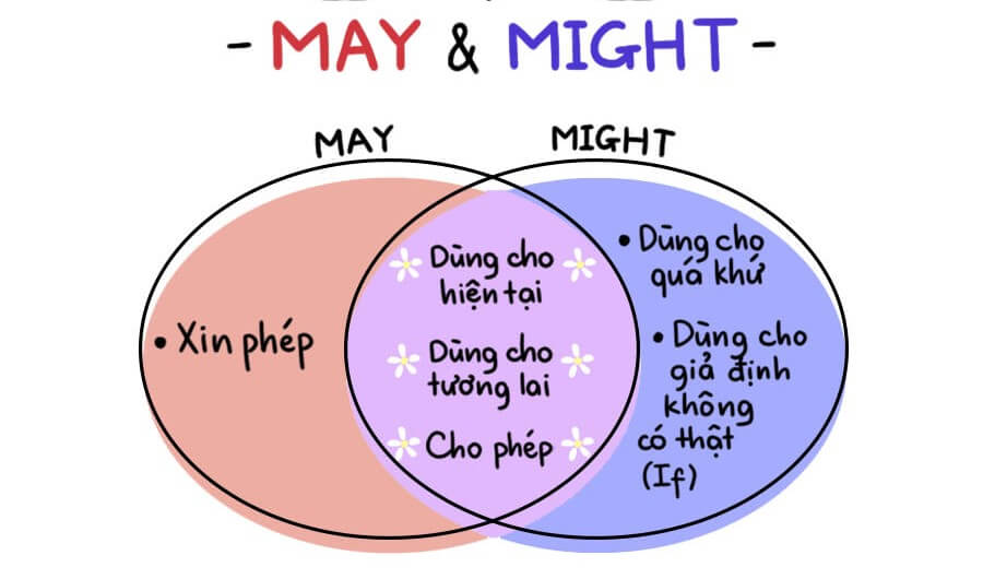 “May” và “might” mang ý nghĩa gần tương tự. Tuy nhiên lại có sắc thái nghĩa khác nhau một chút, và có thể được sử dụng trong các trường hợp khác nhau: