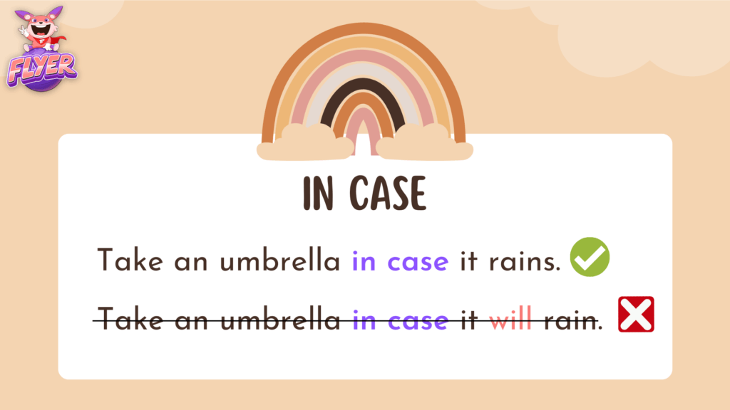 “In case” có nghĩa là “phòng khi/ đề phòng” những trường hợp mang tính tiêu cực, không mong muốn có thể xảy ra.