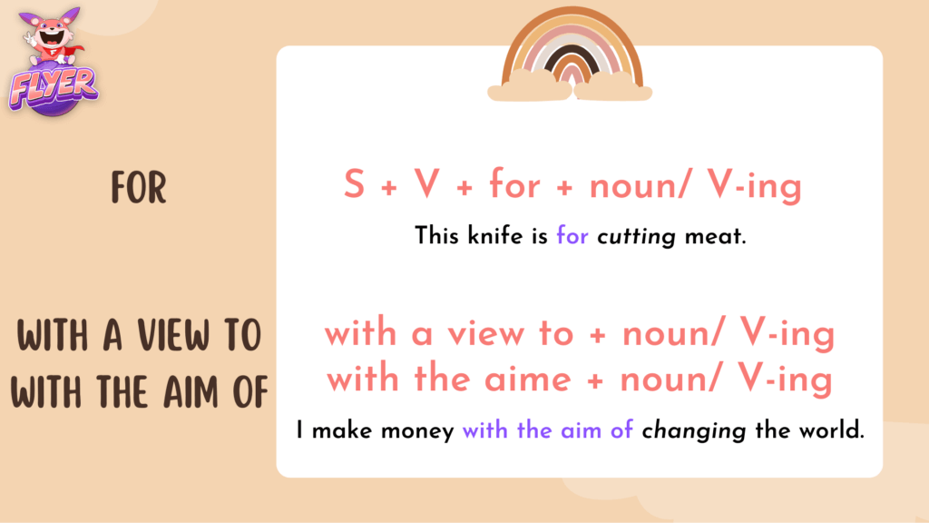 Sau đây, mời bạn cùng FLYER đi sâu vào các cấu trúc của cụm từ chỉ mục đích và mệnh đề chỉ mục đích nhé!