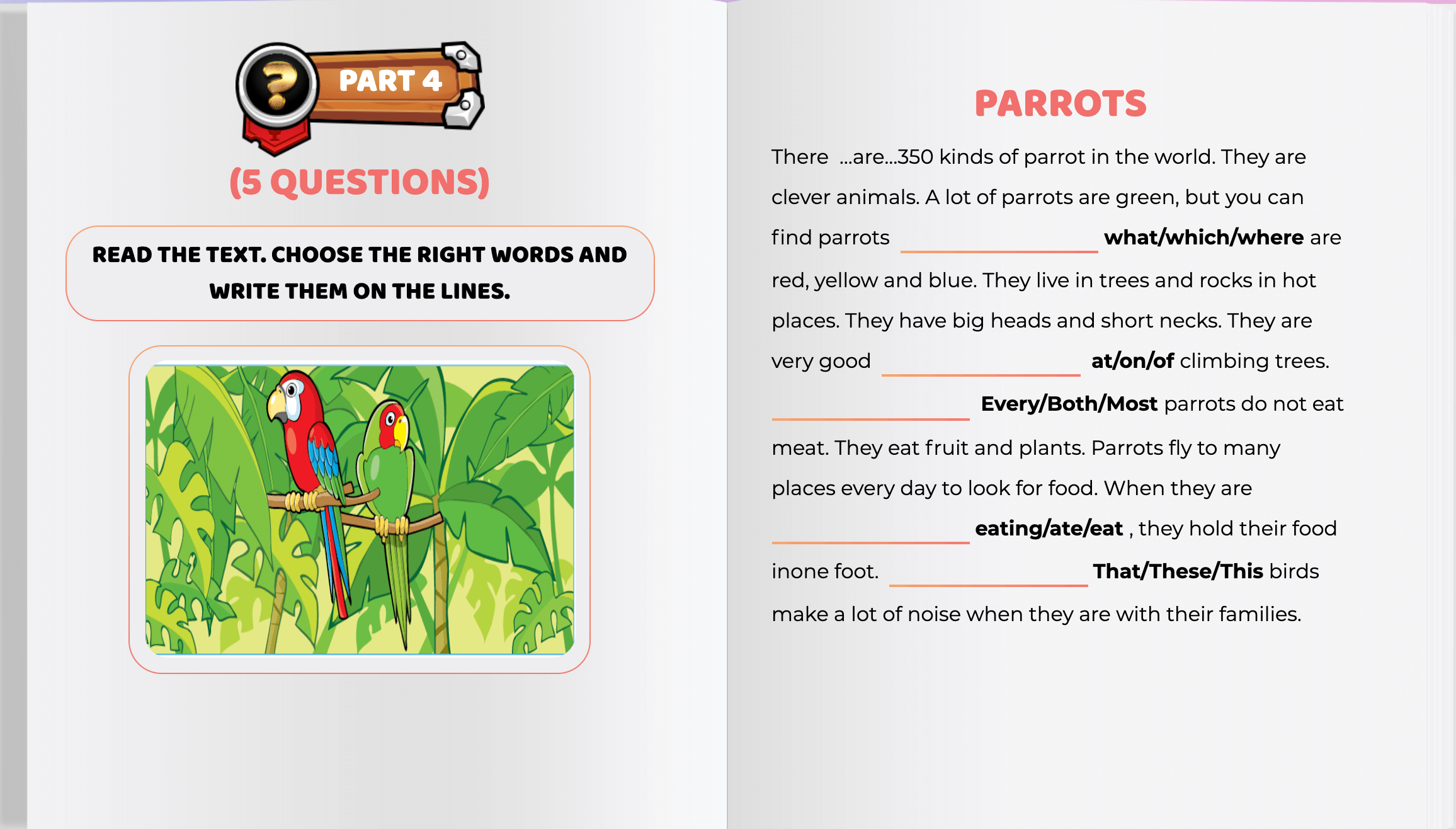 | 5 | Đọc một câu chuyện bao gồm 3 phần, mỗi phần có một bức tranh minh hoạ. Hoàn thành câu chuyện với 1-3 từ thích hợp. |