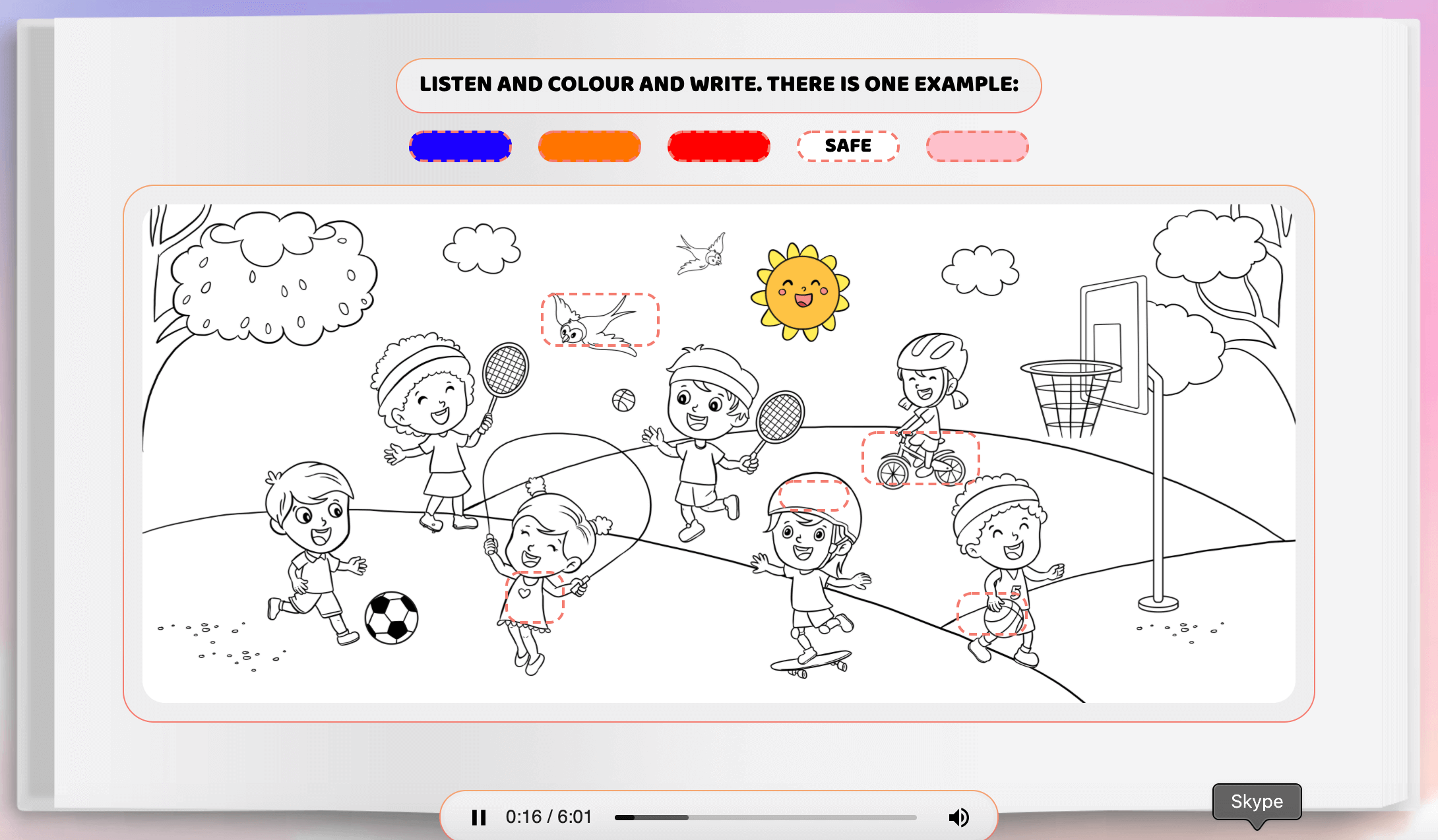 | 5 | Nghe một đoạn đối thoại và tô đúng màu của từng đồ vật theo hướng dẫn trong đoạn đối thoại. |