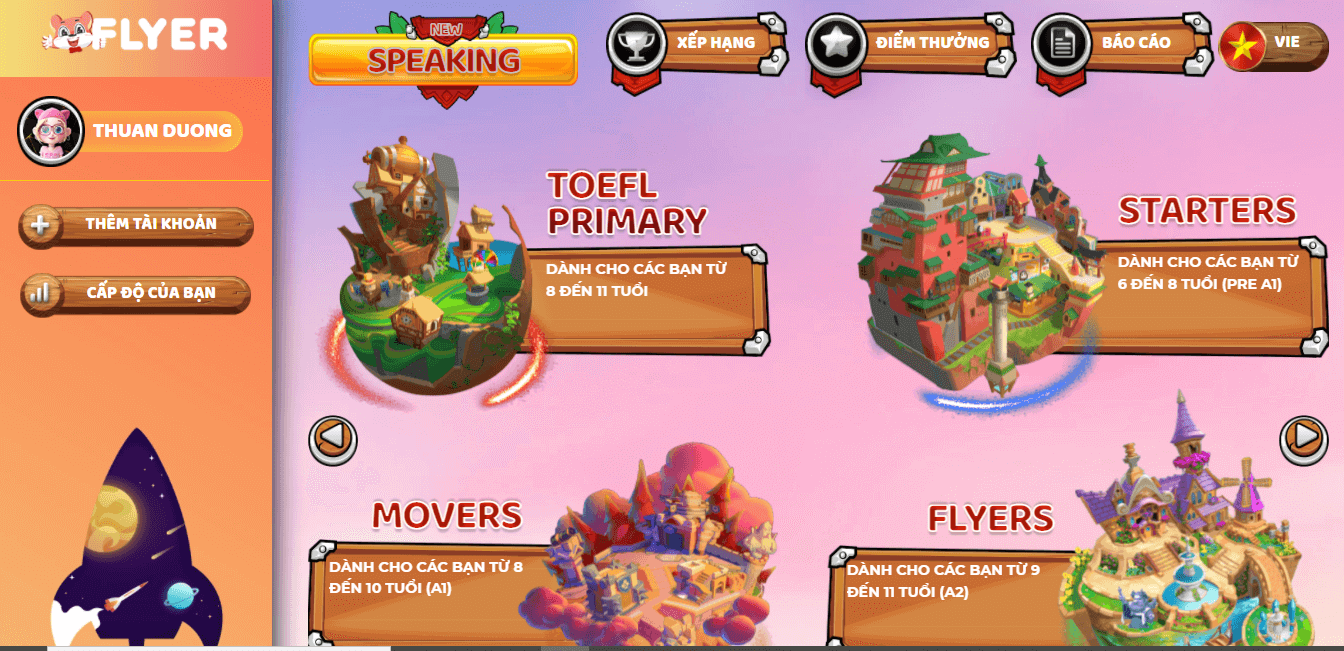 5.1. 200+ đề luyện thi Movers trên Phòng luyện thi ảo FLYER