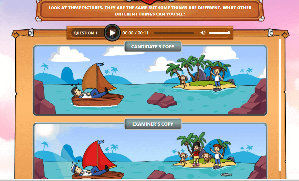 | 1 | Xem 2 bức tranh giống nhau, chỉ có 1 vài điểm khác biệt. Giám khảo yêu cầu thí sinh tìm ra và mô tả 4 điểm khác biệt. |