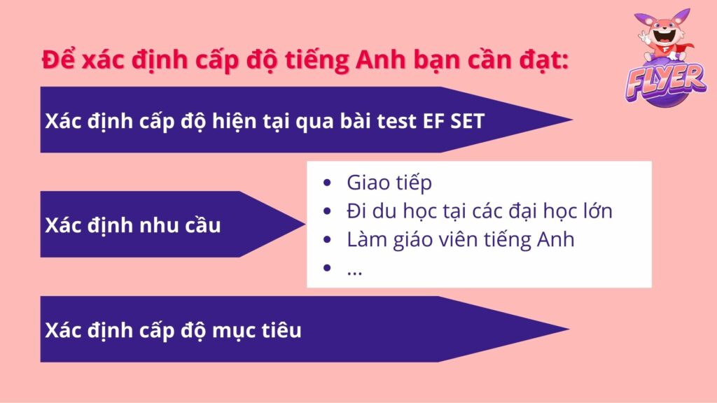 Để xác định cấp độ hiện tại, bạn có thể kiểm tra nhanh trình độ của mình với bài test trình độ nhanh, miễn phí của FLYER: