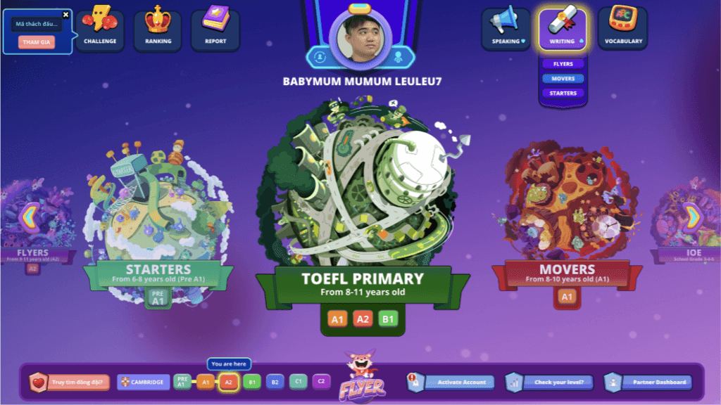 Sau khi đã xác định các yếu tố kế trên, bạn hãy bắt tay vào luyện tập tiếng Anh ngay tại Phòng luyện thi ảo FLYER nhé! Chỉ với vài bước đăng ký tài khoản đơn giản, việc học tiếng Anh của bạn sẽ theo lộ trình và có bài bản hơn, nhờ đó bạn sẽ nhanh chóng đạt được cấp độ tiếng Anh mong muốn. Không những vậy, bạn còn được “vừa học vừa vui” với hàng loạt tính năng game hấp dẫn được tích hợp trong những bộ đề tiếng Anh “xịn”, đảm bảo bạn sẽ có những giờ học tiếng Anh siêu chất lượng đó!