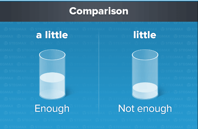 Tương tự như “few” , “little” cũng mang nghĩa phủ định là mang sắc thái tiêu cực hơn “ít nhưng không đủ dùng”. “A little” sẽ được dùng trong trường hợp lượng vật vẫn đủ để sử dụng.