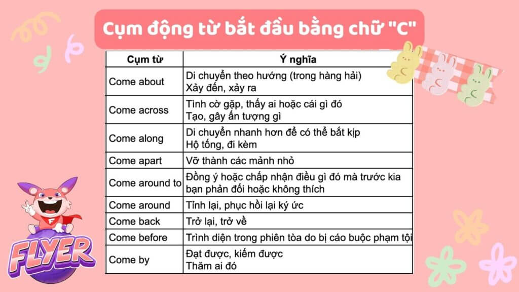 Sau đây FLYER xin gửi đến bạn các cụm động từ bắt đầu bằng chữ “c”: