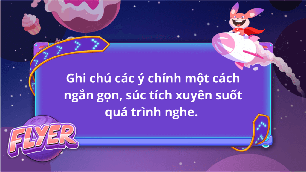 Bước đầu tiên để luyện nghe podcast hiệu quả chính là tóm tắt nội dung bài nghe. Thay vì sau khi nghe hết bài mới tóm tắt, bạn nên ghi chú những ý chính một cách ngắn gọn, súc tích xuyên suốt quá trình nghe. Điều này không chỉ tránh cho bạn bỏ quên, sót ý trong quá trình luyện nghe mà còn rèn luyện khả năng nắm bắt ý nhanh nhạy cho bạn.