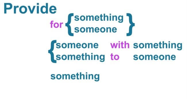 Lưu ý: đôi lúc “thứ được cung cấp (something)” sẽ không nằm giữa “provide” và “to” mà sẽ được đảo lên trước hoặc không xuất hiện. Trong trường hợp này, cấu trúc “provide + to” sẽ được dùng với hàm ý “chủ thể (subject)” cung cấp cho “người nào đó (someone)”.
