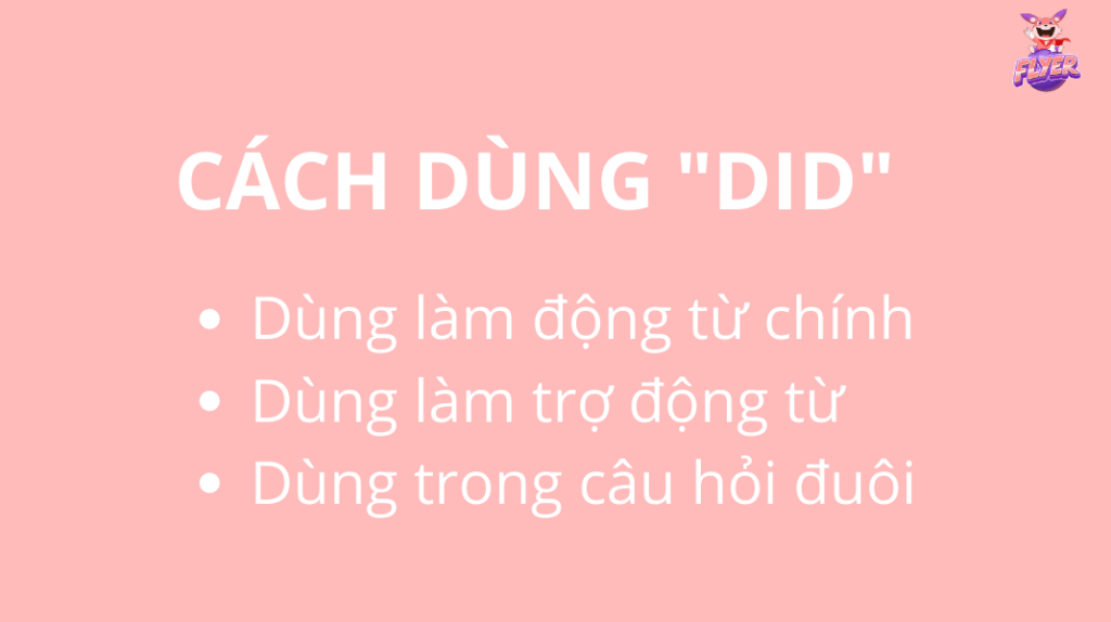 “Did” được sử dụng trong câu quá khứ đơn với chức năng làm động từ chính hoặc trợ động từ