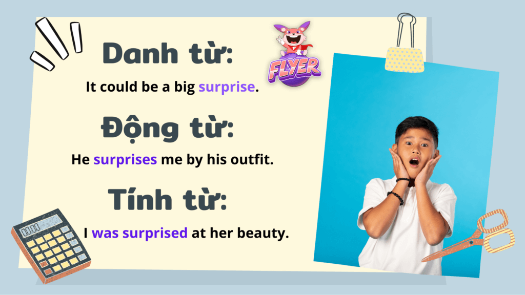Ngoài ra, FLYER cũng sẽ giúp bạn phân biệt sự khác nhau giữa “surprise”, “surprised” và “surprising”. Giờ thì bắt đầu nhé.