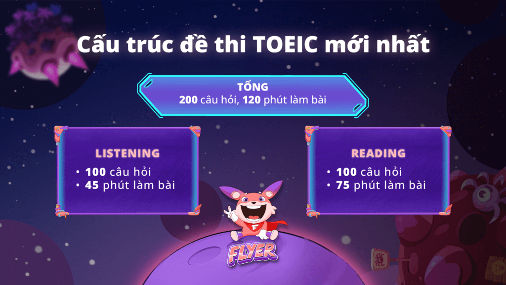 Kể từ ngày 1/6/2019, tổ chức IIG (đơn vị tổ chức thi TOEIC chính thức tại Việt Nam) đã thông báo về sự thay đổi trong cấu trúc đề thi TOEIC. “Biết người biết ta, trăm trận trăm thắng.” Việc hiểu rõ về cấu trúc bài thi là rất quan trọng để bạn có sự chuẩn bị kỹ lưỡng và dễ dàng đạt kết quả tốt. Hiểu được điều đó, FLYER xin chia sẻ với bạn về cấu trúc đề thi TOEIC mới nhất. Hy vọng bài viết này sẽ có ích cho quá trình học và luyện thi TOEIC của bạn!