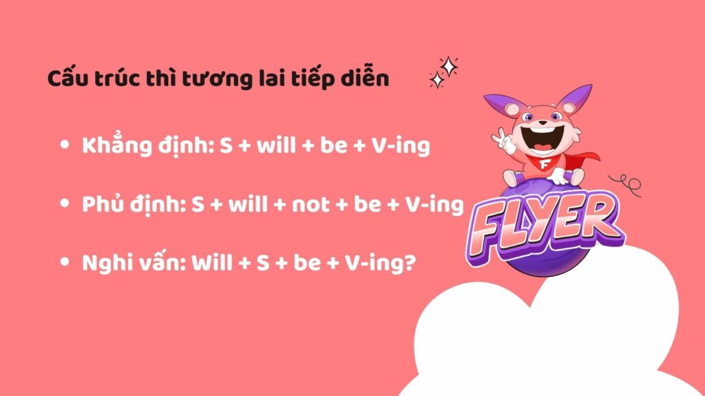 Là 1 trong trong 12 thì tiếng Anh, thì tương lai tiếp diễn (Future Continuous) tuy không được sử dụng nhiều như tương lai đơn nhưng lại có thể giúp cách viết và nói của chúng ta sinh động và chính xác hơn rất nhiều. Hiểu được điều đó, FLYER đã tổng hợp chi tiết các kiến thức cần thiết để giúp các bạn nắm vững cách dùng của cấu trúc này qua bài viết dưới đây, hãy cùng tìm hiểu nhé!