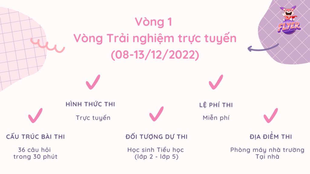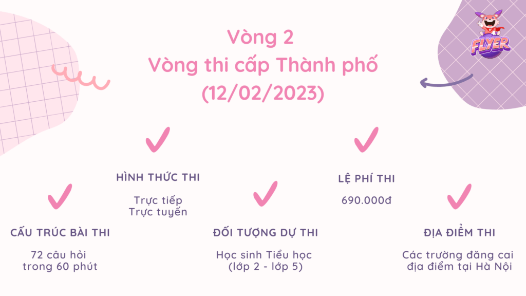 | Đối tượng dự thi | Học sinh Tiểu học từ lớp 2 đến lớp 5 (năm học 2022 – 2023) đăng ký trên tinh thần tự nguyện |