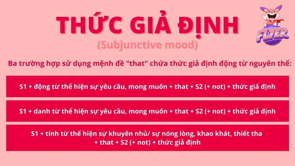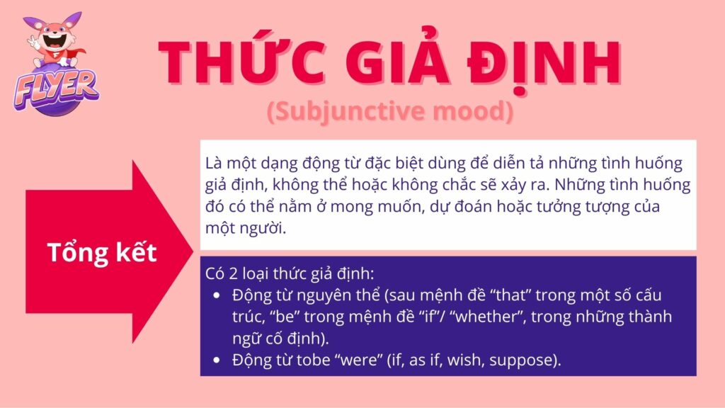 Như vậy, bạn đã hoàn thành toàn bộ kiến thức về thức giả định trong tiếng Anh. Trước khi bước sang phần luyện tập, FLYER sẽ giúp bạn củng cố lại bài học trên với 2 ý chính sau: