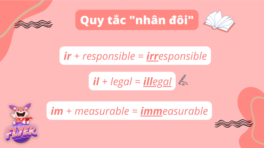 Từ bắt đầu bằng “m” hoặc “p” => Dùng “im-” và nhân đôi “m” |