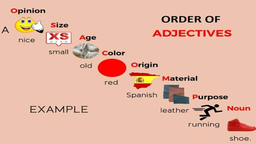 Đối với các trường hợp trên, bạn cần tuân theo trật tự tính từ OpSACOMP để sắp xếp tính từ cho phù hợp. Theo quy tắc này, những tính từ thể hiện quan điểm chung sẽ được xếp trước, theo sau là tính từ chỉ quan điểm cá nhân và cuối cùng là các tính từ mô tả.