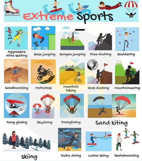 | Skateboarding | /skeit ‘bɔ:diη/ | Trượt ván |