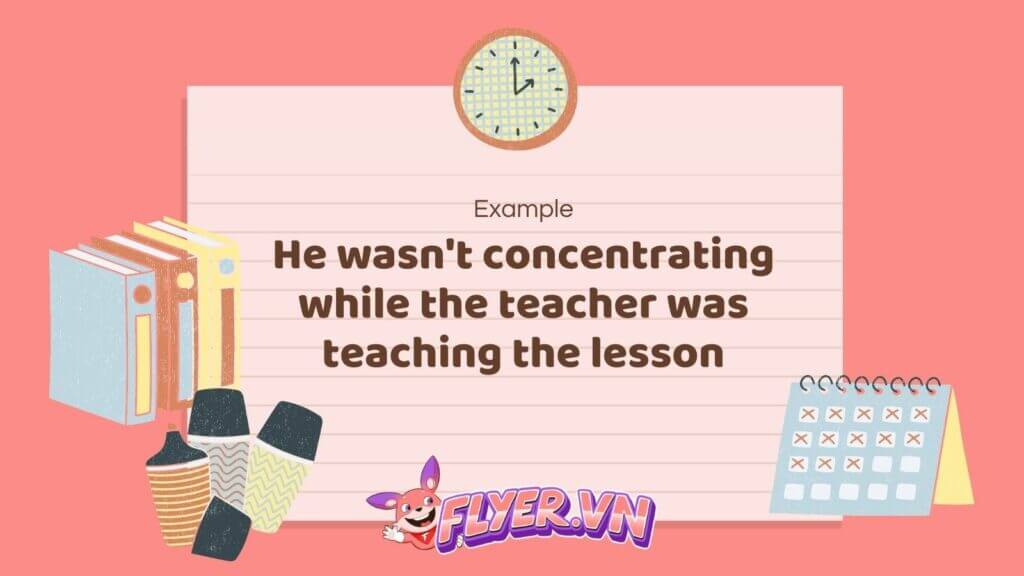 Mệnh đề chính (Quá khứ tiếp diễn) + while + Mệnh đề trạng ngữ chỉ thời gian (Quá khứ tiếp diễn)