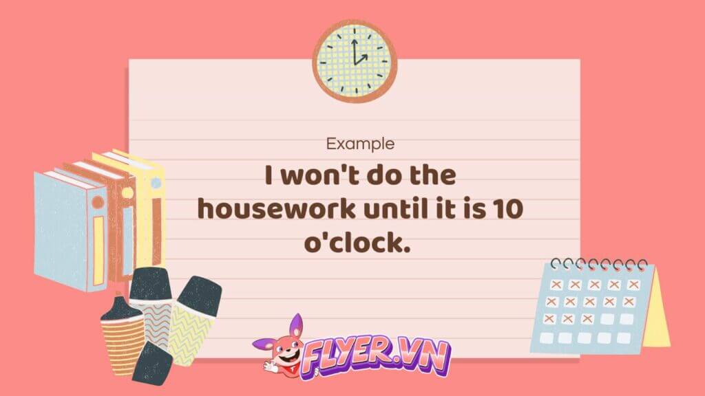 Mệnh đề chính (Hiện tại đơn) + until/ as soon as/ when + Mệnh đề trạng ngữ chỉ thời gian (Hiện tại đơn)