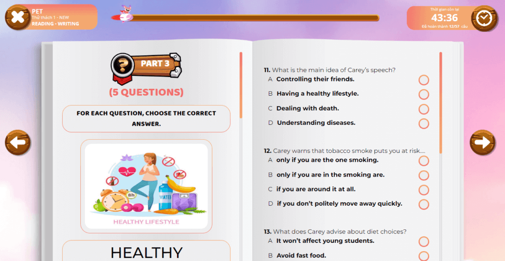 Để luyện thi các chứng chỉ tiếng Anh hiệu quả tại nhà, ba mẹ có thể tham khảo cho con luyện thi trên Phòng thi ảo FLYER: